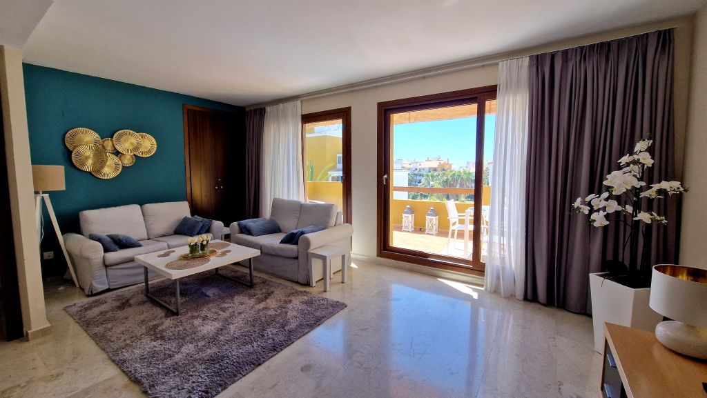 Przestronny apartament wakacyjny w Punta Prima w Torrevieja o powierzchni 89 m² z dużym tarasem. W jego skład wchodzą dwie sypialnie, dwie łazienki oraz salon z kuchnią.